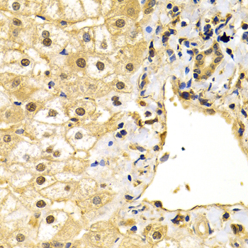 Immunohistochemistry of paraffin-embedded human liver injury using VCP antibody at dilution of 1:200 (40x lens).