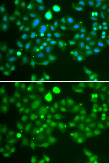 Immunofluorescence analysis of A549 cell using VPS37A antibody. Blue: DAPI for nuclear staining.