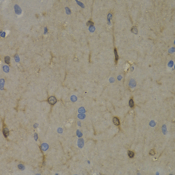 Immunohistochemistry of paraffin-embedded rat brain using WNT3A antibody at dilution of 1:200 (400x lens).