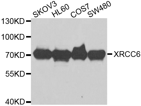 Western blot analysis of extracts of various cell lines, using XRCC6 antibody.