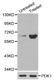| Immunogen | A phospho specific peptide corresponding to residues surrounding S410 of human PDK1 |